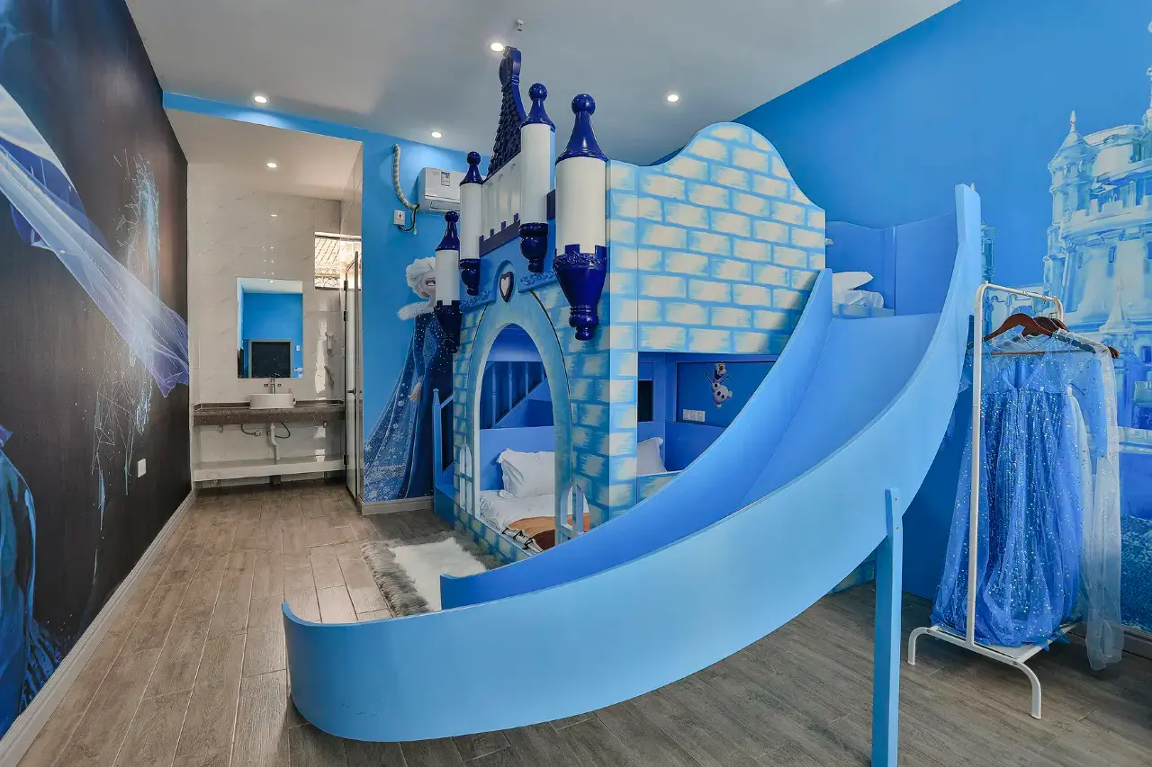お子様が氷の宮殿や魔法の冒険を夢見ている場合でも、あるいは探検で一日を過ごした後にただ楽しく眠れる場所を探している場合でも、エルサキャッスル・スライド・ファミリールームは、お子様に喜びを与える体験を提供するだけでなく、ご両親が喜ぶ快適さと利便性も兼ね備えています。この包括的な紹介では、あらゆる特徴、アメニティ、実用的な配慮について詳しく説明し、このユニークな宿泊施設でご家族の完璧な滞在を思い描いていただけるようお手伝いします。